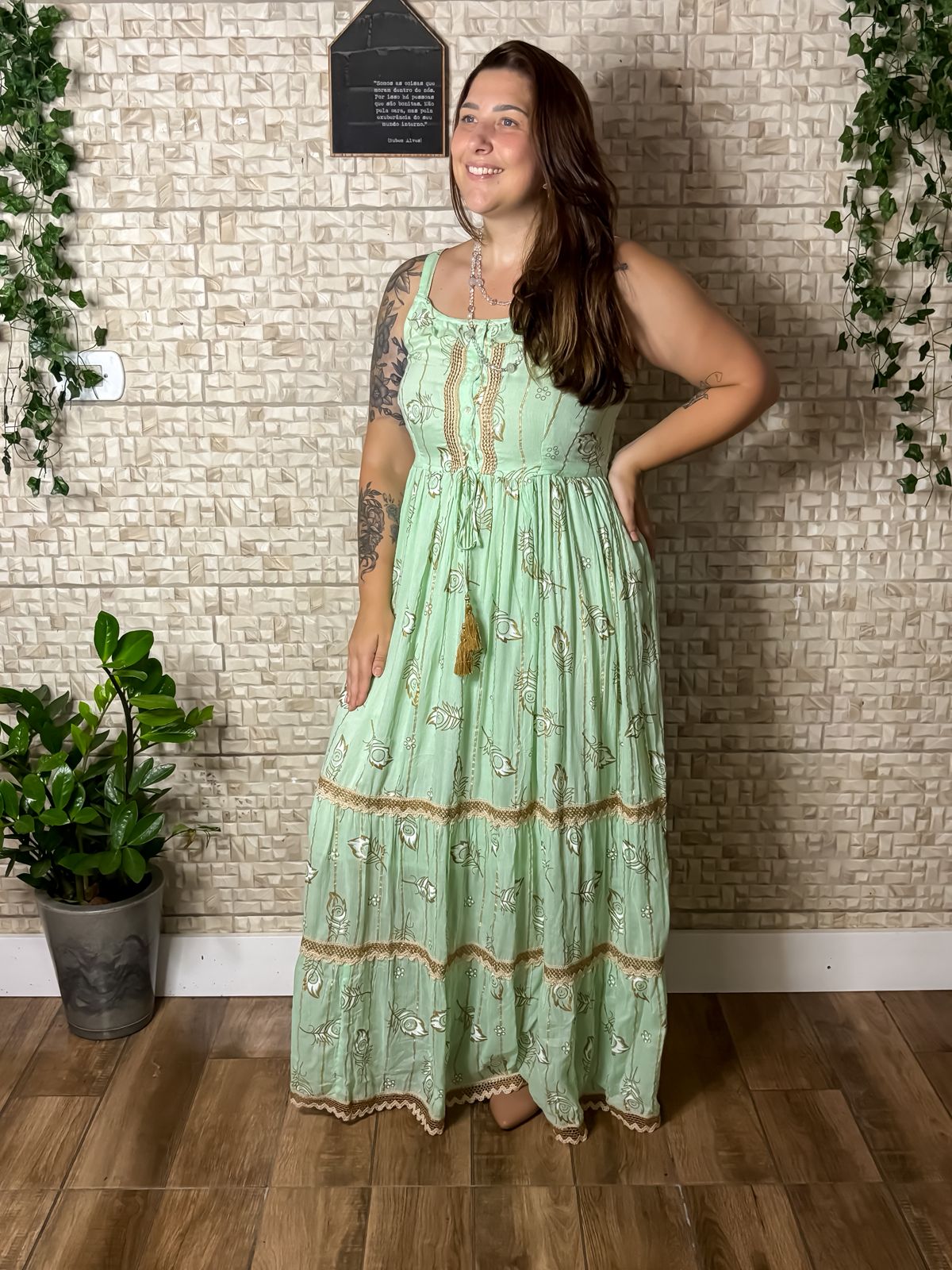 O Vestido Esmeralda é a expressão da feminilidade com leveza e charme. Confeccionado em 100% viscose, possui toque macio, caimento fluido e conforto ideal para acompanhar o corpo com naturalidade.